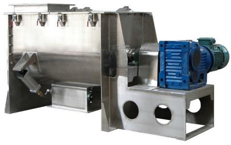 1、根據出料方式選擇(xuanze):應選擇適合自己工藝的閥門形式,同時不要選擇側口的出料形式。螺帶混合機一般用于粘性或有凝聚性的粉粒體的混合以及粉粒體中添加液體及糊狀物料的混合,同時由于粘性物料清洗困難的特點,適用于產量大、不經常更換品種的場合混合。原因是當混合機在規定(guī dìng)時間完成攪拌混合后,短時間內一次放清可保證物料的均勻度。如用側口螺旋帶逐漸放凈,一是耽誤時間,達不到預期生產率(productivity);二是物料本已達到好均勻度,過度攪拌反而會使物料離析,破壞了均勻度,從而失去了選用臥式螺帶混合機的意義。